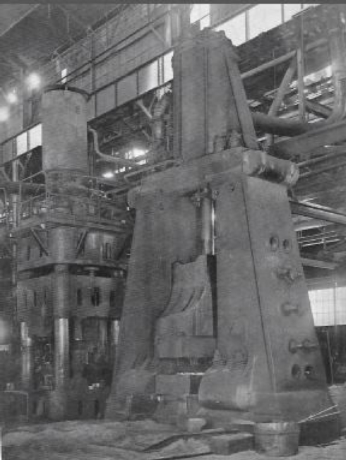 Le montage s'effectue six mois après et l'outil de 16 tonnes est opérationnel le 2 mai. Le plus gros marteau-pilon du monde se trouvant aux usines